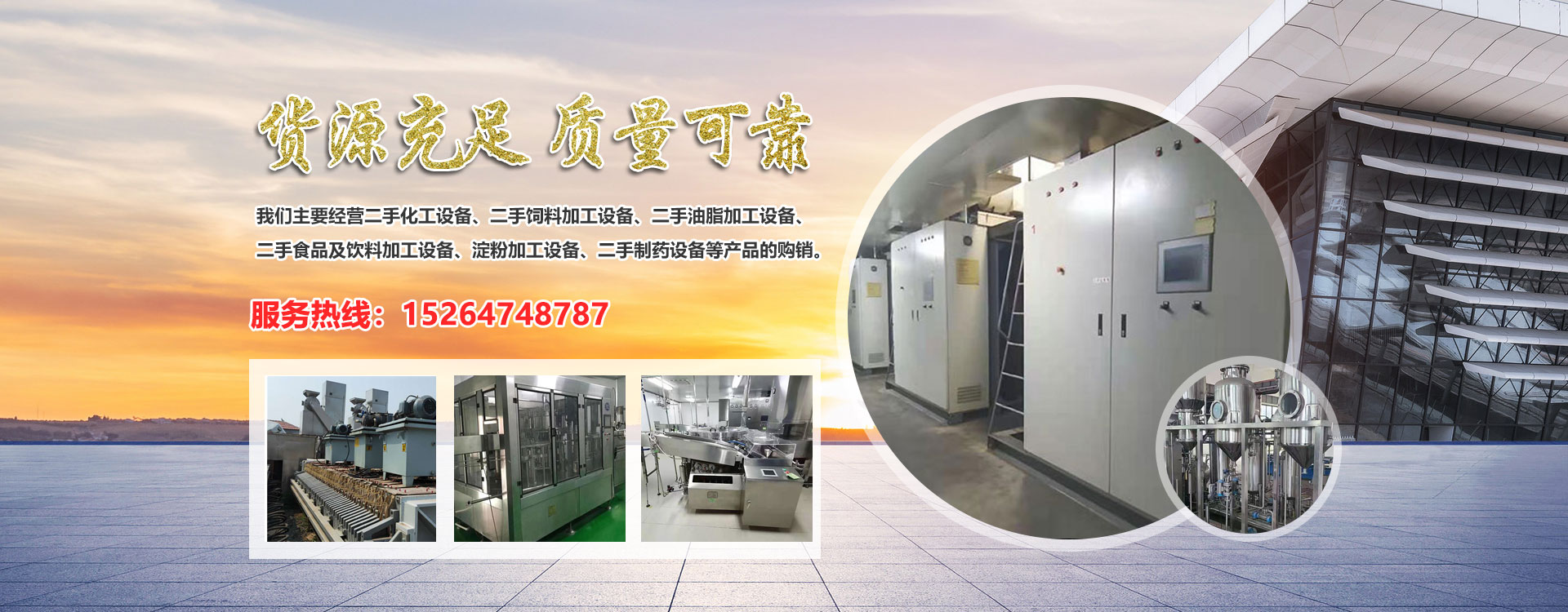 我们主要经营二手化工设备、二手饲料加工设备、二手油脂加工设备、二手食品及饮料加工设备、淀粉加工设备、二手制药设备回收等产品的购销。